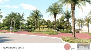 Tại trung tâm là Quảng trường Crystal – không gian sự kiện mở ra biển, bố trí đá tự nhiên cùng các artwork biểu tượng làm điểm nhấn thị giác, đồng thời là nơi tổ chức các hoạt động cộng đồng, lễ hội và sự kiện văn hóa. Đây được xem là “trái tim” của toàn bộ công trình, nơi đón dòng chảy sinh hoạt chung và tạo nên bản sắc nhận diện cho dự án. Bên cạnh đó là các phân khu như Làng Gió – khu ẩm thực và sự kiện lấy cảm hứng từ làng chài ven biển; Ốc đảo San Hô với những đường dạo mềm mại, không gian thư giãn xanh mát; Đảo sinh vật biển dành cho trẻ em với các mô hình sinh vật đại dương; Sân chơi Đạp Sóng cho các hoạt động thể thao ngoài trời; cùng khu vực Vườn đá – Miếu Ông Địa, nơi lưu giữ yếu tố tâm linh và văn hóa bản địa.