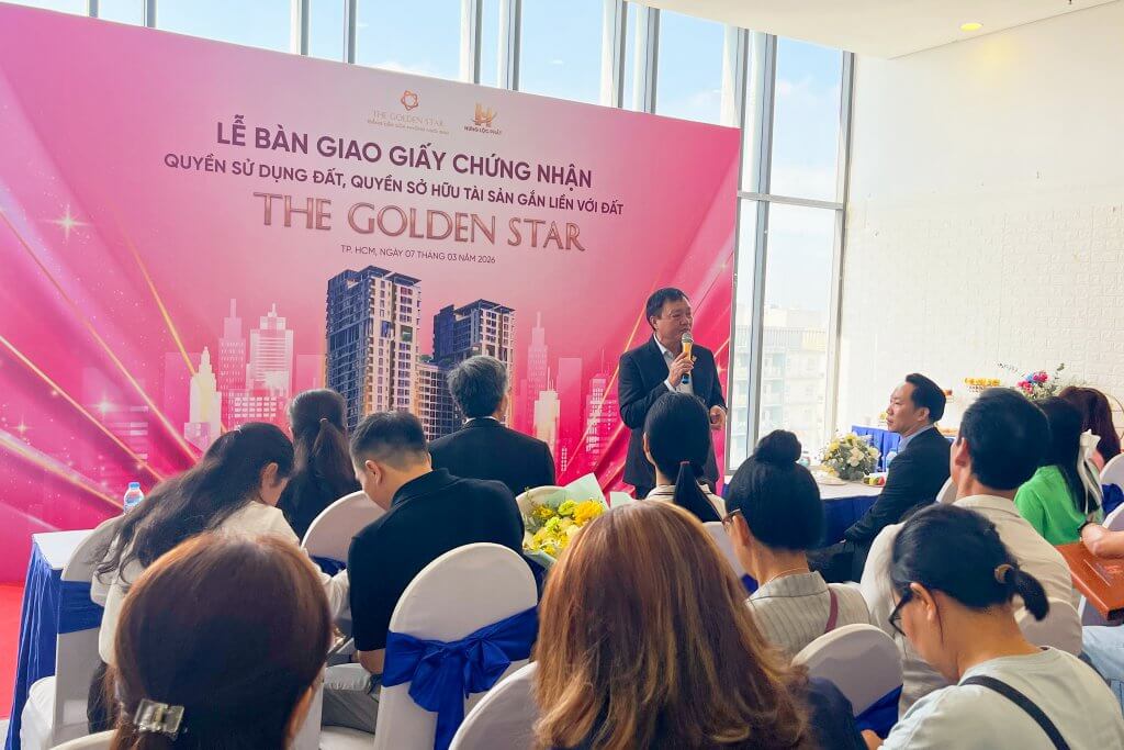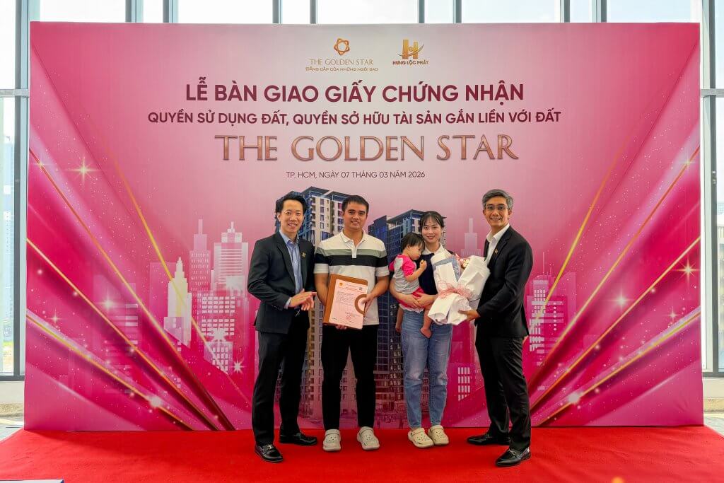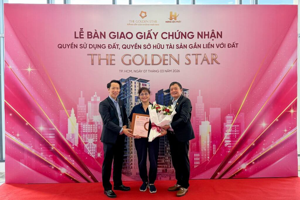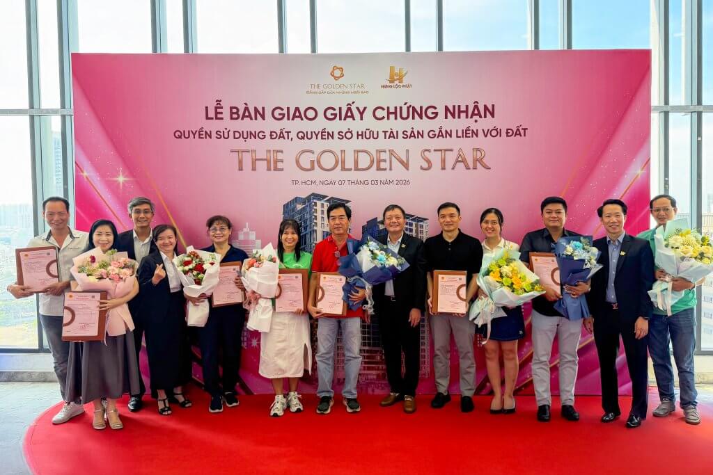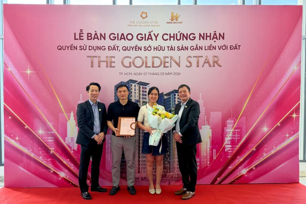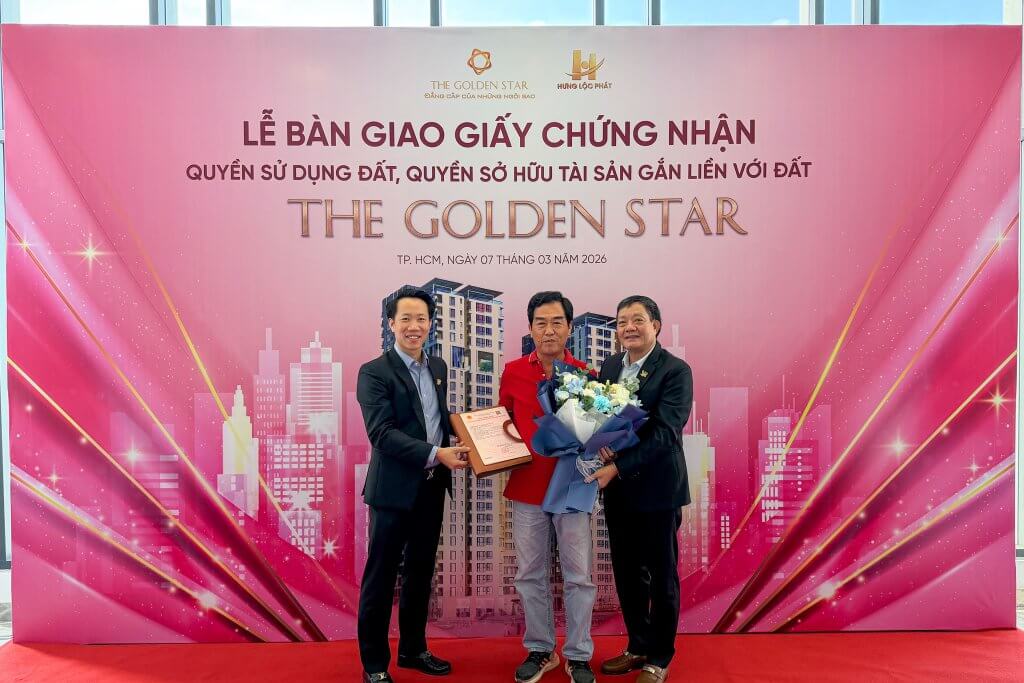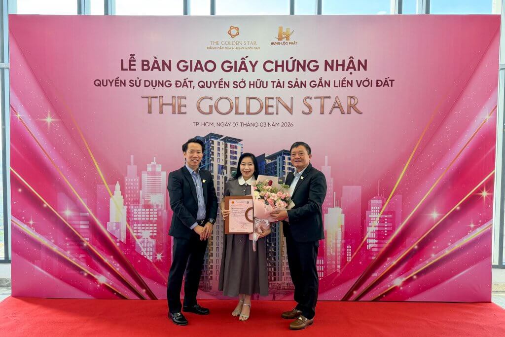 Sáng ngày 07/03/2026, tại Khu căn hộ The Golden Star (58B Nguyễn Thị Thập, P. Tân Thuận, TP.HCM – Quận 7 cũ), Hưng Lộc Phát Corp đã long trọng tổ chức Lễ bàn giao Giấy chứng nhận quyền sử dụng đất, quyền sở hữu tài sản gắn liền với đất (Sổ hồng) đến Quý Khách hàng sở hữu căn hộ. Sự kiện là cột mốc quan trọng, đánh dấu quá trình hoàn thiện pháp lý của dự án, đồng thời thể hiện rõ cam kết xuyên suốt của Chủ đầu tư trong việc đảm bảo quyền lợi hợp pháp, chính đáng và lâu dài cho khách hàng.