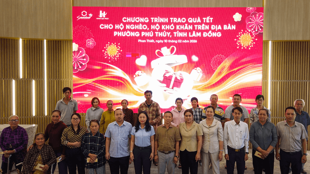 Ngày 10/02/2026, Hưng Lộc Phát Corp đã phối hợp cùng đại diện chính quyền địa phương tổ chức chương trình trao tặng quà Tết đến các hộ gia đình có hoàn cảnh khó khăn trên địa bàn Phường Phú Thủy, Tỉnh Lâm Đồng. Đây là một trong những hoạt động trọng điểm nằm trong chuỗi chương trình an sinh xã hội được triển khai trong dịp kỷ niệm 25 thành lập Hưng Lộc Phát Corp.